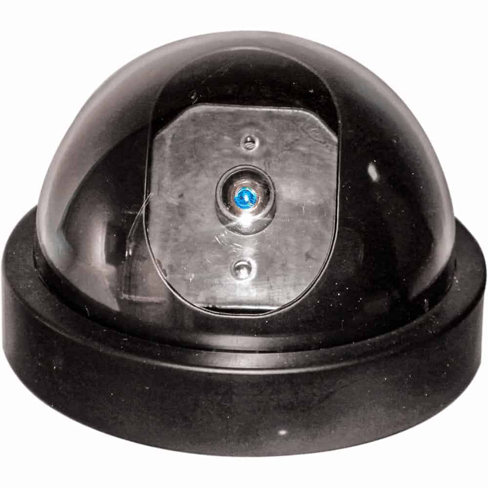 Layer 3 — Dummy cameras for extended coverage: Deploy dummy dome cameras to create the impression of comprehensive surveillance across interior spaces, secondary entries, and garage access.