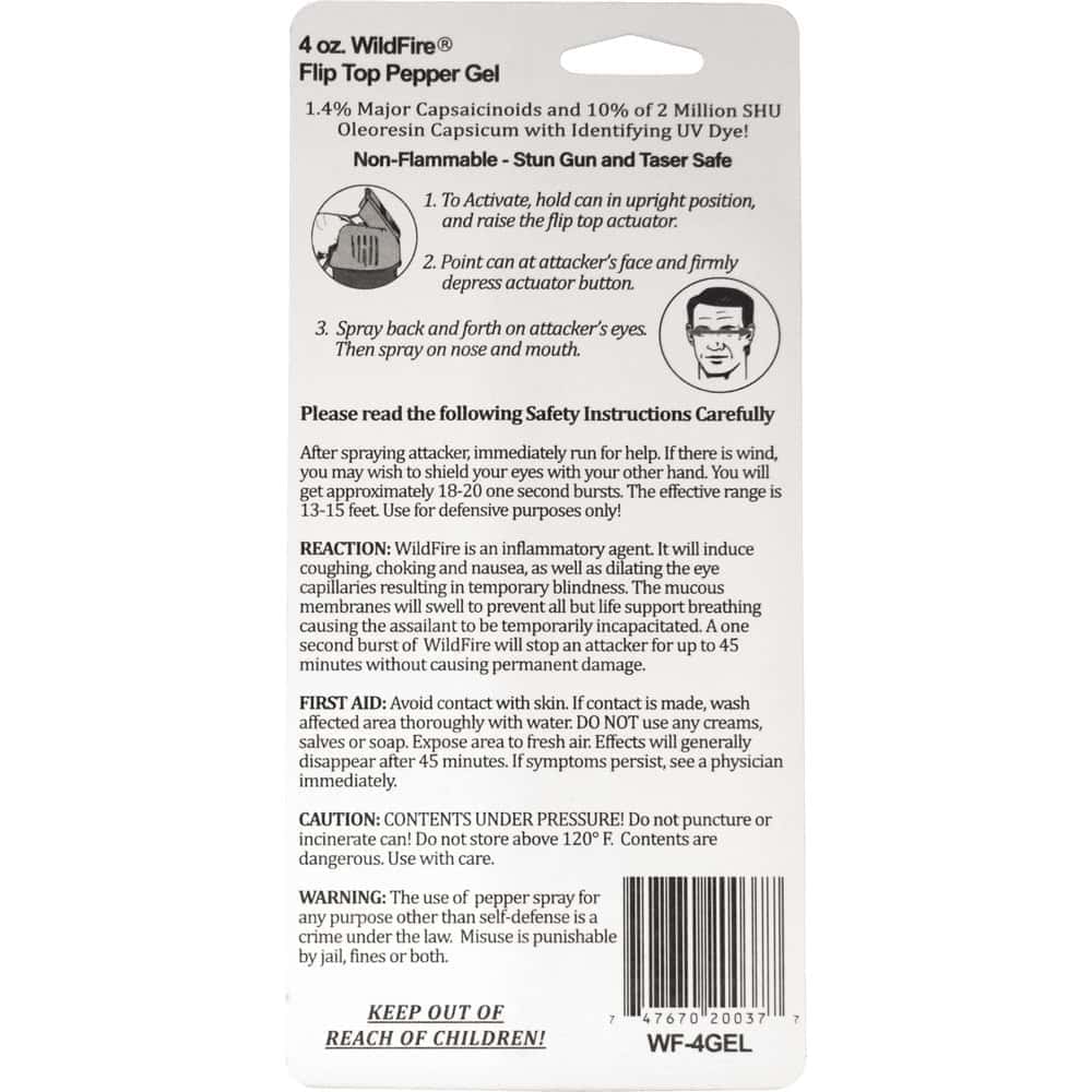 The Wildfire™ 1.4% MC Pepper Gel. Features include Hottest Formula in Gel Format, UV Dye, Flip-Top Safety, Available in 2 oz and 4 oz Sizes.